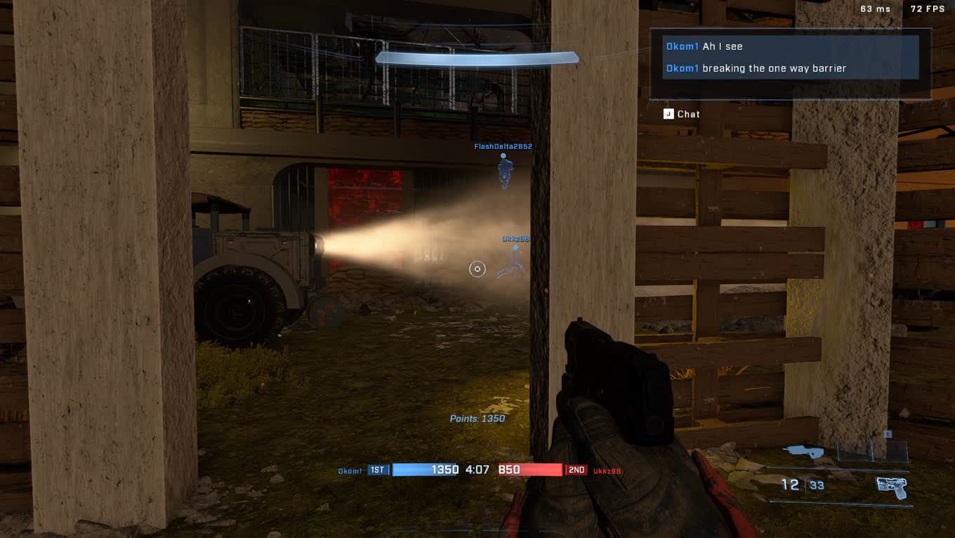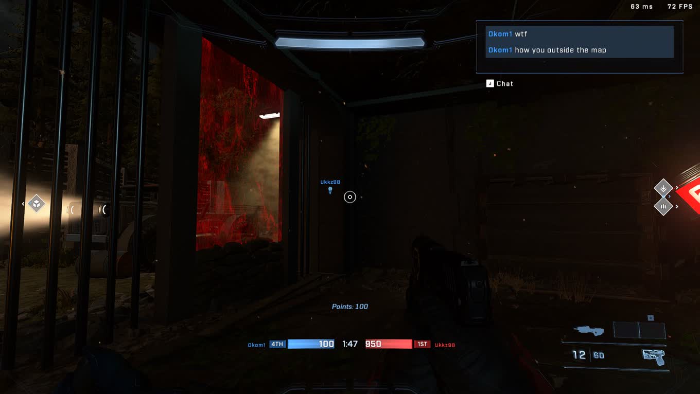 We refined our exploit strategy as the match went on, and it eventually turned into one person spamming the Score Attack on the platform while the remaining players got AI kills manually in the map using the OP weapons found outside the map. Our exploiting fun came to an unexpected end after around one hour of using it, as the AI stopped spawning completely. I believe this was due to a combination of some dynamic object limits with dropped grenades, and us spamming the Nuke powerup at the very beginning which caused all the AI to die at the same time, possibly leading to weirdness.