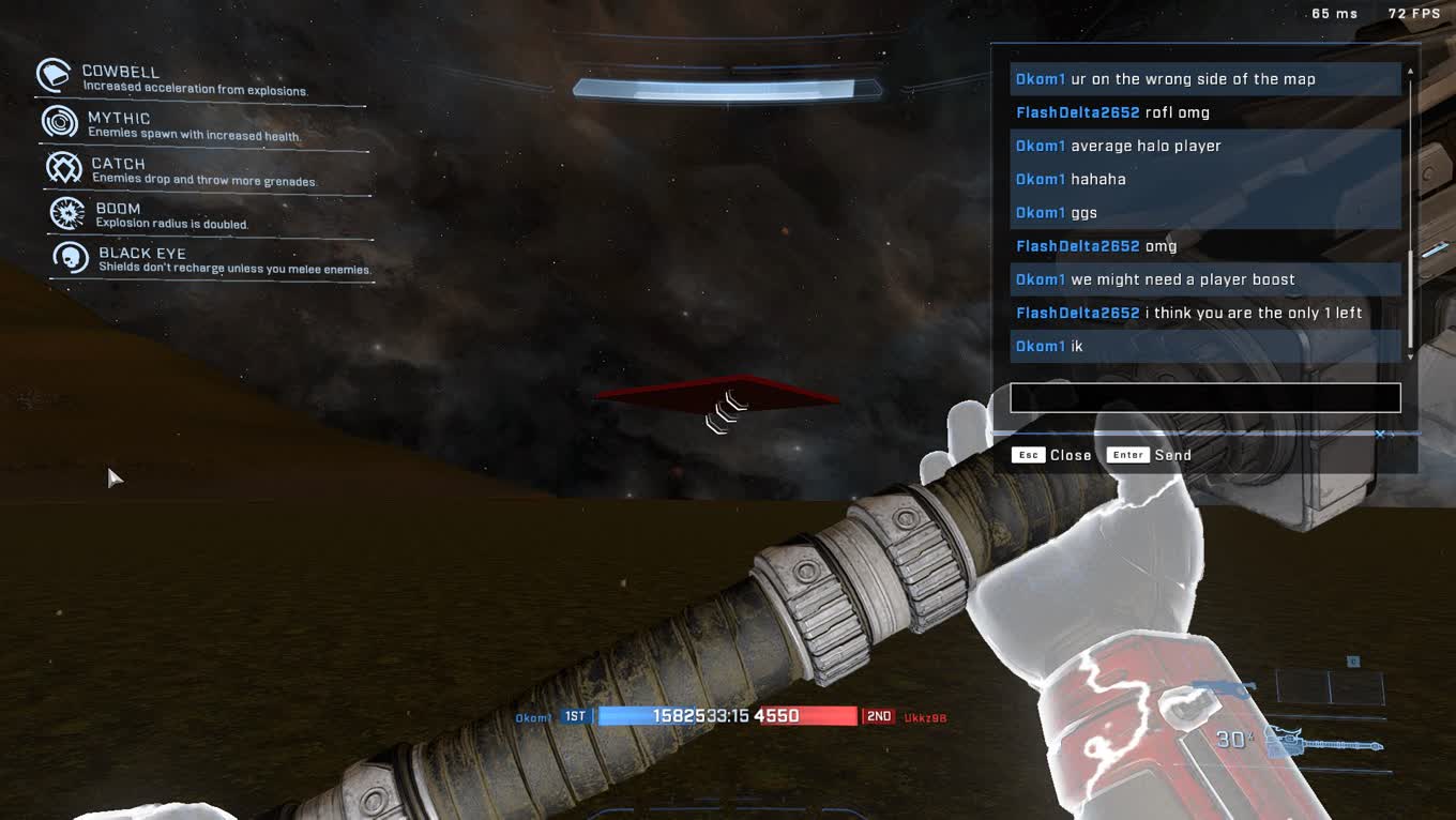 In the end we accumulated a hefty amount of XP for each member at the end of the game. 205,920 for EliteFalcon, 186,600 for me and 69,540 for MaxBloodBath—something akin of 50 15–minute BTB games worth per player, all in one 1.5 hour–long match. The STU mode was slated to be removed from the temporary community workshop playlist just two days later, and TFF had their sights on moving to developing UEFN content in just 5 days, so we joked about this being a funny send-off for Halo Infinite.