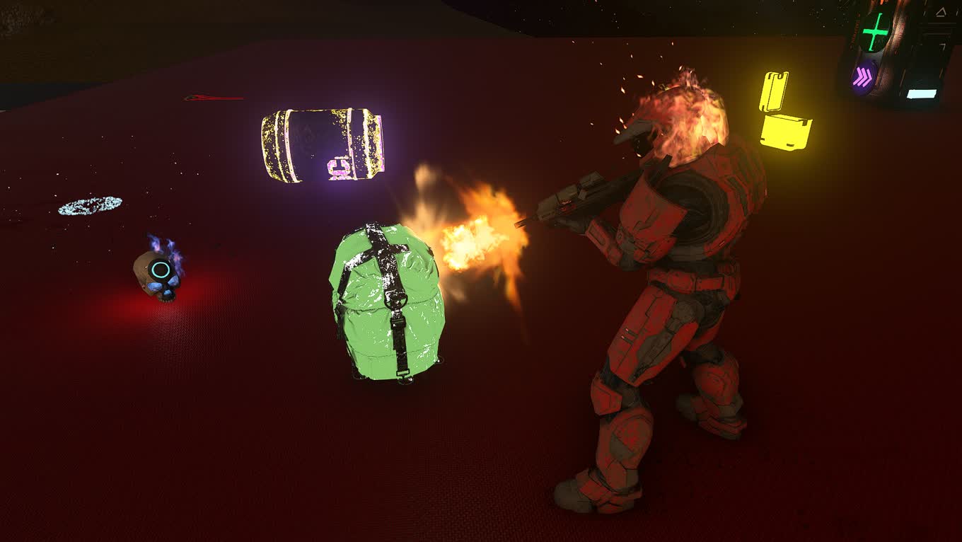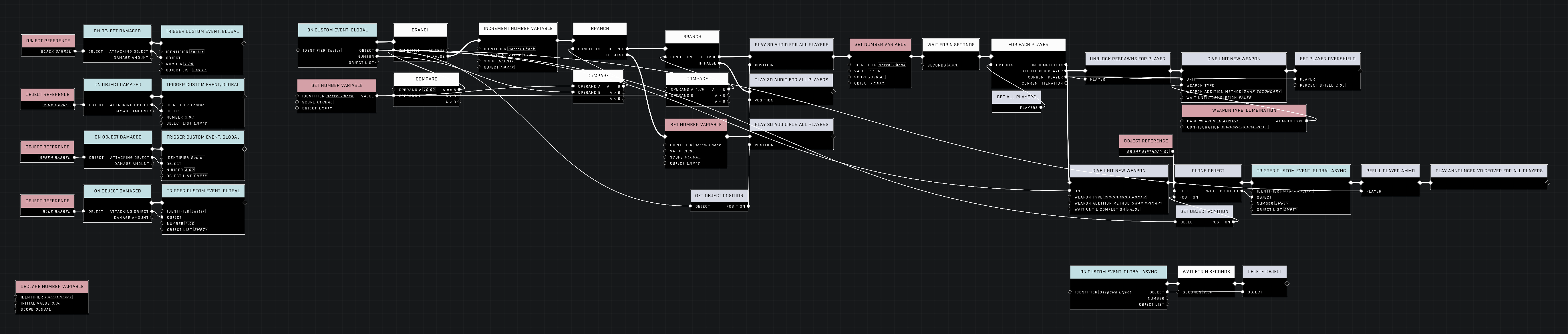 What the Easter Egg was a reference to was the TFF Forge Panel at HCS Worlds 2024 where the four TFF members had T-Shirts of various colors. From left to right the colors were: black, pink, green & blue; this was the order the colored barrels had to be shot at in order to activate the Easter Egg. For me, a story not unlike that of the IWHBYD Skull from Halo 3, as when I saw a screenshot of EliteFalcon holding a Gravity Hammer on Night of The Undead, I loaded up the map in Forge and dissected it down object-by-object to finally find the Easter Egg code after 30 minutes. The difference here was that I didn't leak the Easter Egg.