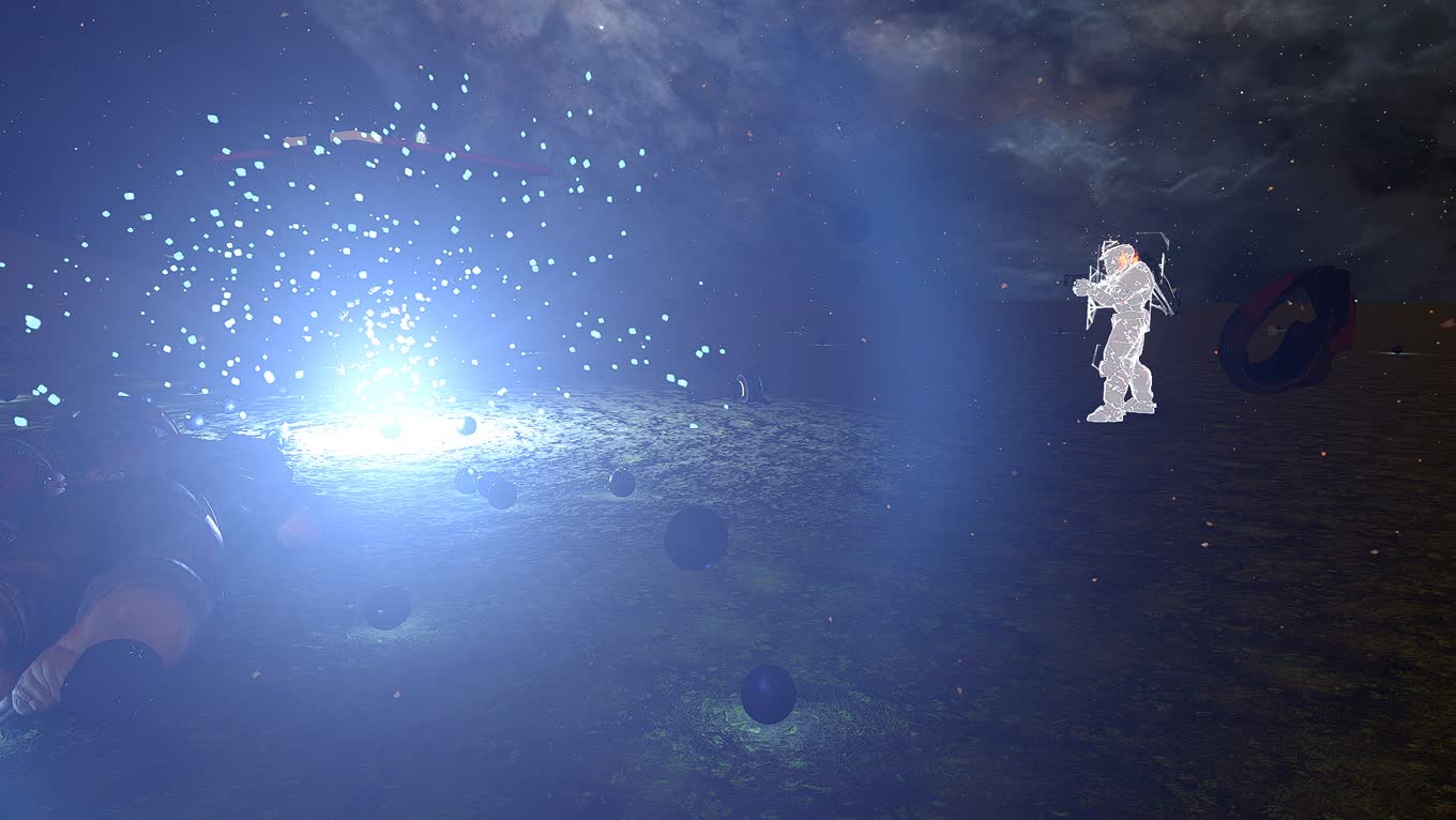 The main idea was to stack the score multiplier powerup (Score Attack, green bag) many times, and then either get the Nuke (black/purple cylinder) or just rack up manual AI kills. Picking up the Nuke would grant 400 Points multiplied by the amount of Score Attacks active. Getting manual AI kills would increase the Personal Score, which equaled to the XP output at the end of the game. We initially wanted to reach 1 million Points just to see if the UI could handle it, and then afterwards we realized we could get a massive amount of XP from just getting AI kills.